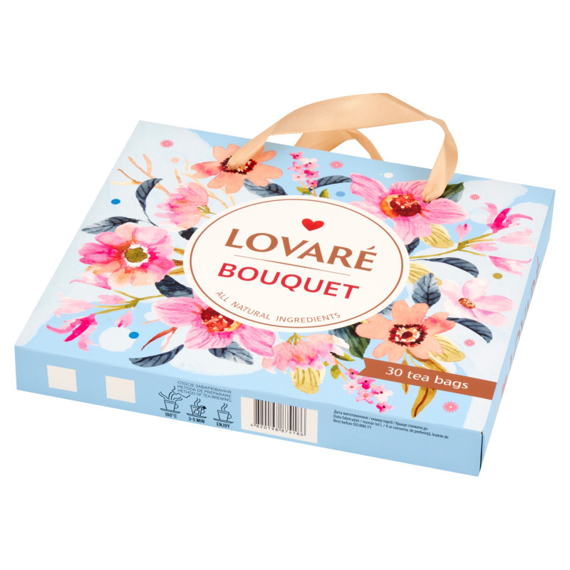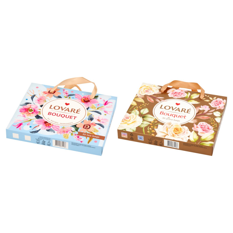 Skład zestawu: herbata Lovare w asortymencie. 30 torebek herbaty w indywidualnych kopertach - 6 rodzajów po 5 sztuk.