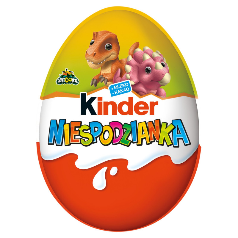 Kinder Niespodzianka to pyszna czekolada połączona z niespodzianką w formie zabawki. Seria Kinder Niespodzianki NATOONS przenosi dzieci w świat dinozaurów, gdzie czekają realistyczne figurki od triceratopsa po tyranozaura. To niezwykła okazja, by poprzez zabawę odkrywać fascynującą przeszłość naszej planety, rozwijać wyobraźnię i cieszyć się każdą nową przygodą.