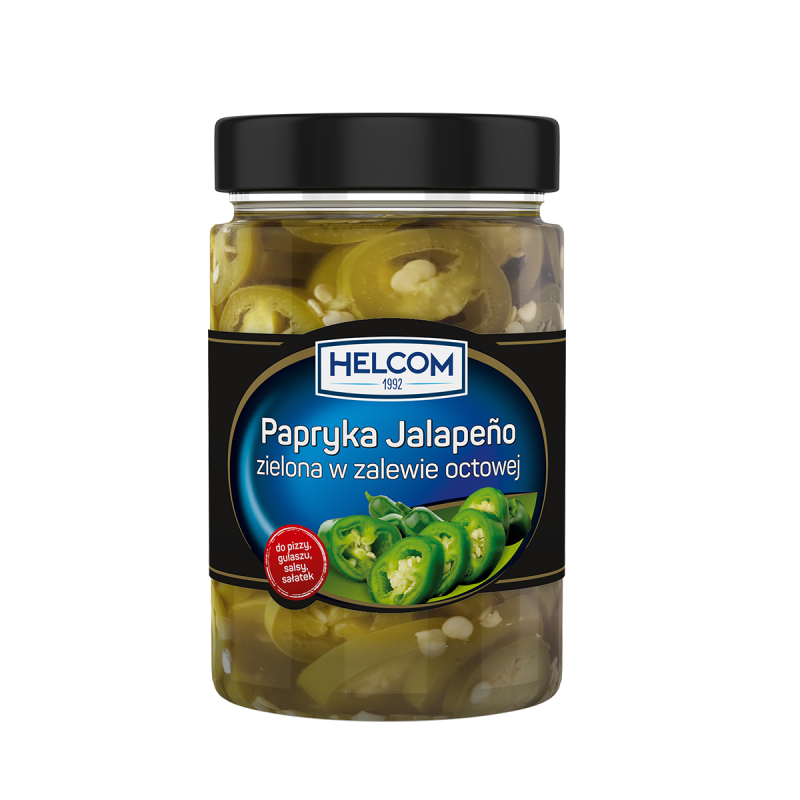 Składniki: woda, papryka jalapeño, sól, ocet spirytusowy, regulatory kwasowości (kwas octowy, kwas cytrynowy), substancja wiążąca chlorek wapnia, substancja konserwująca pirosiarczyn sodu.