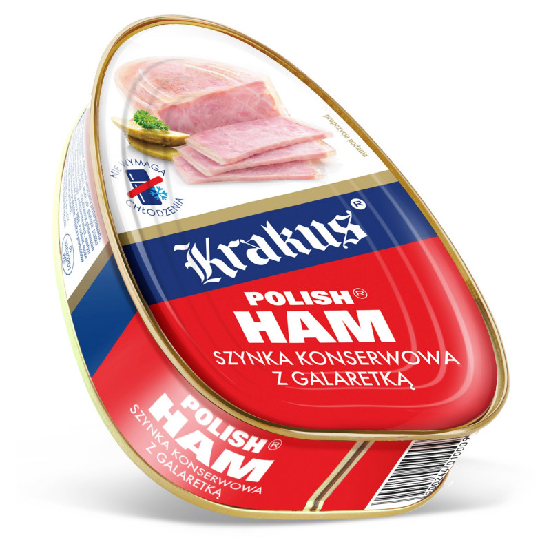 Konserwa sterylizowana, szynka wieprzowa z połączonych kawałków mięsa z dodaną wodą.