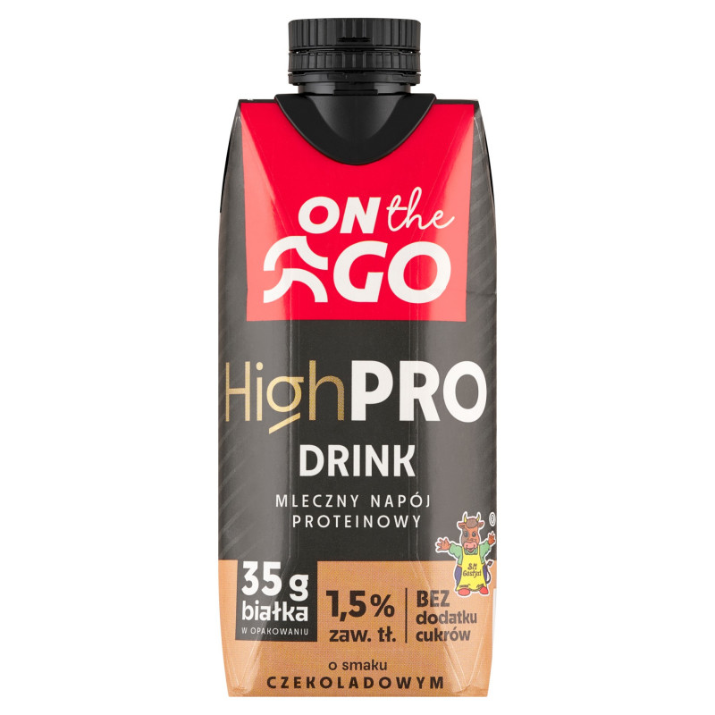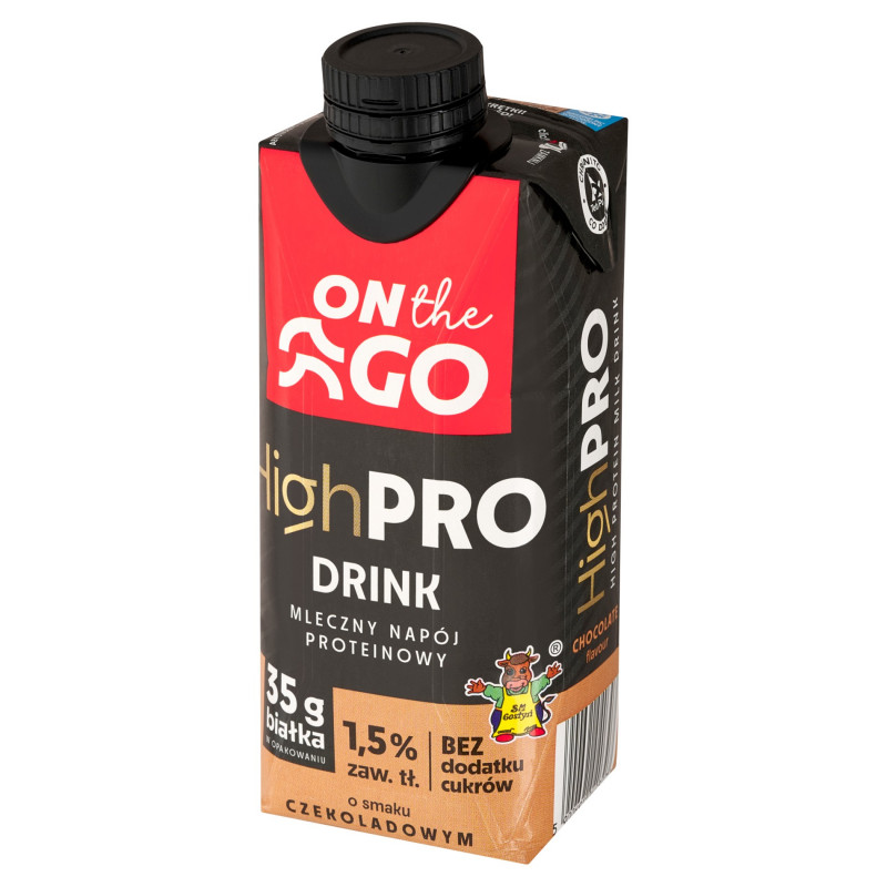 Mleczny napój proteinowy o smaku czekoladowym. Produkt UHT. Zawiera substancje słodzące.