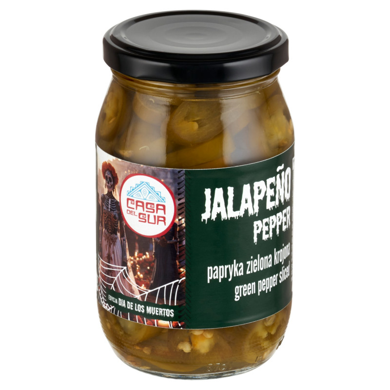 Papryka jalapeño zielona krojona marynowana. Produkt pasteryzowany.