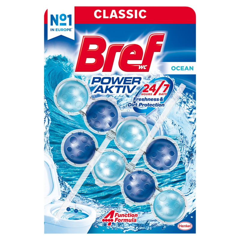 Bref Power Aktiv czyści toaletę z każdym spłukaniem. Przez 24/7 zapewnia świeżość i ochronę przed brudem utrzymującą się nawet pomiędzy spłukaniami.